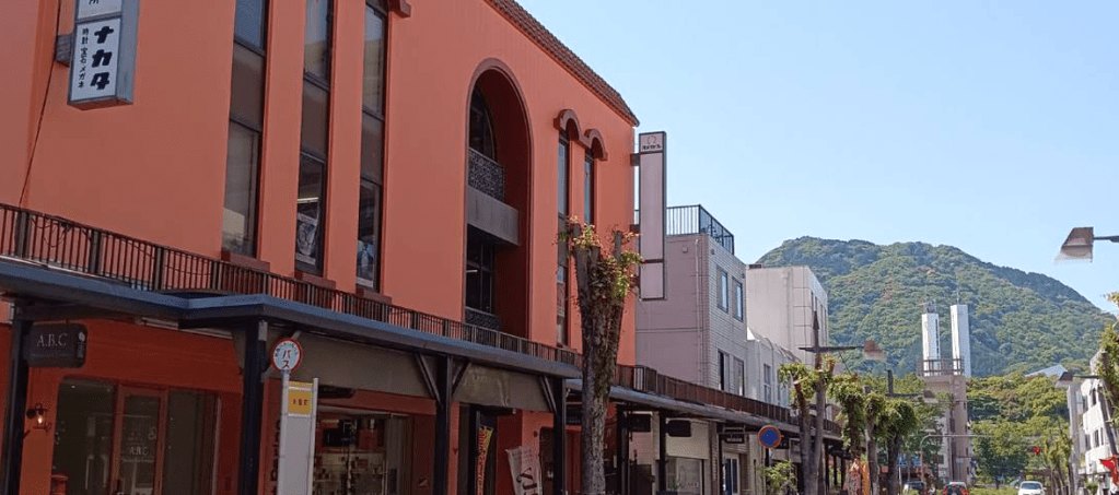 アルシュピールは山口駅から県庁までのまっすぐな道のりの間にあるアーケード商店街の一角にあるオメガビルの2階となります。